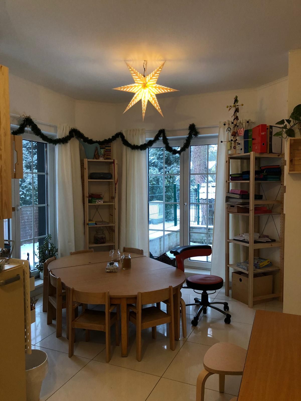 Unser Garten umfasst zwei voneinander getrennte Bereiche für unsere Moosmutzel und Wohnzimmerkinder. Wir sind aber auch gerne alle zusammen. Bei schönem Wetter nutzen wir unsere zwei Terrassen als erweiterten Raum zum Spielen, Essen u.ä..